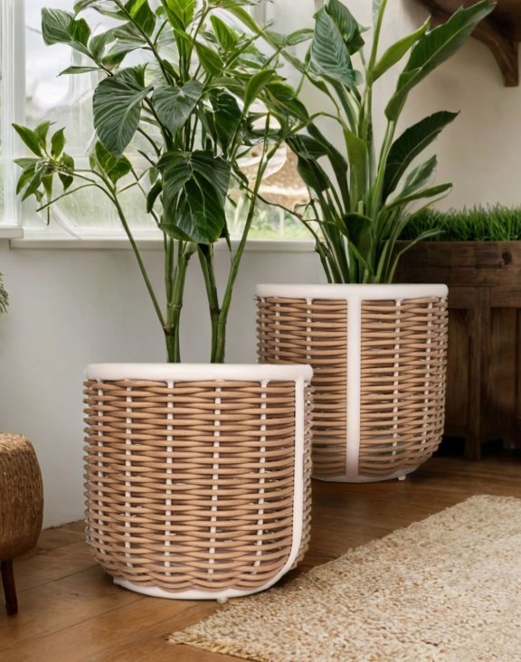 Velký zahradní květináč z technoratanu Malta značky Snapty Garden je výjimečným spojením přírodního vzhledu a moderního designu.