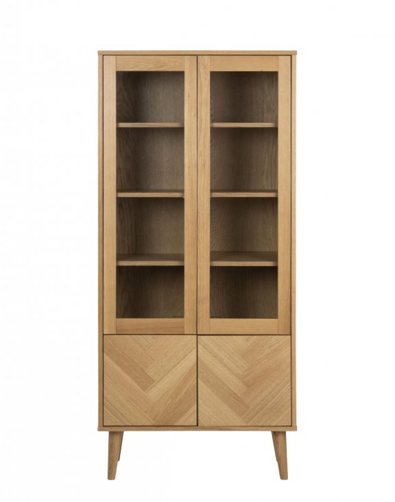 Vitrína Nagano značky Actona je úchvatný kus nábytku, který zdobí nadčasová herringbone struktura.