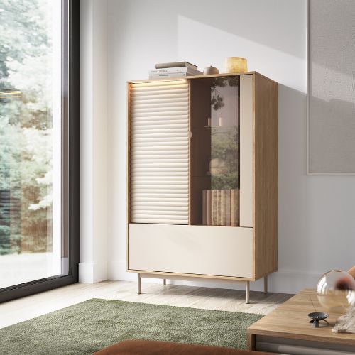 Vitrína Tila TI1 se dokonale hodí do interiérů ve stylu skandinávském, japandi, moderním i soft loftovém. Její vytříbený vzhled, pečlivé zpracování a kvalitní materiály z ní činí nejen praktický kus nábytku, ale i ozdobu každého obývacího pokoje, jídelny či pracovny.