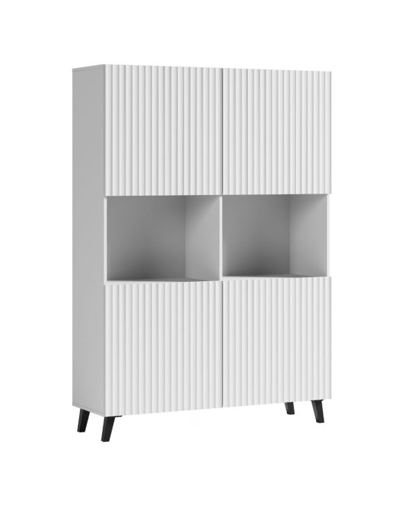 Vysoká komoda Phuket zaujme štíhlým provedením a bílými rýhovanými čelními plochami v moderním designu.