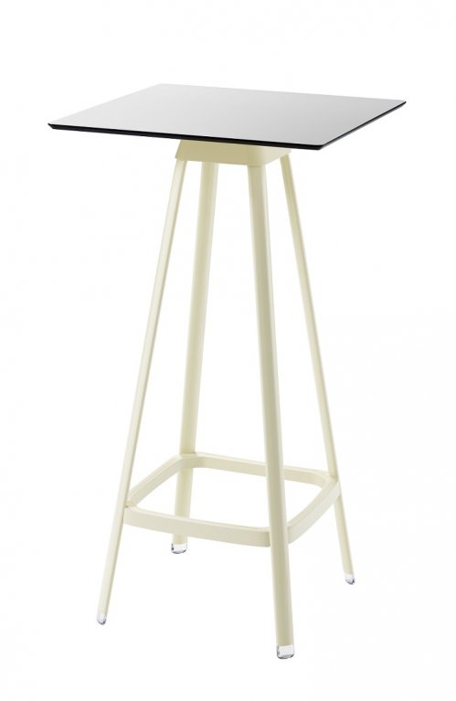 Vysoký kavárenský stůl s opěrkou nohou, ideální pro restaurační zahrady - Sol H výrobce Snap je model stolu, který se díky své struktuře a geometrickému tvaru bude skvěle hodit na zahradní akce nebo během různých společenských akcí.
