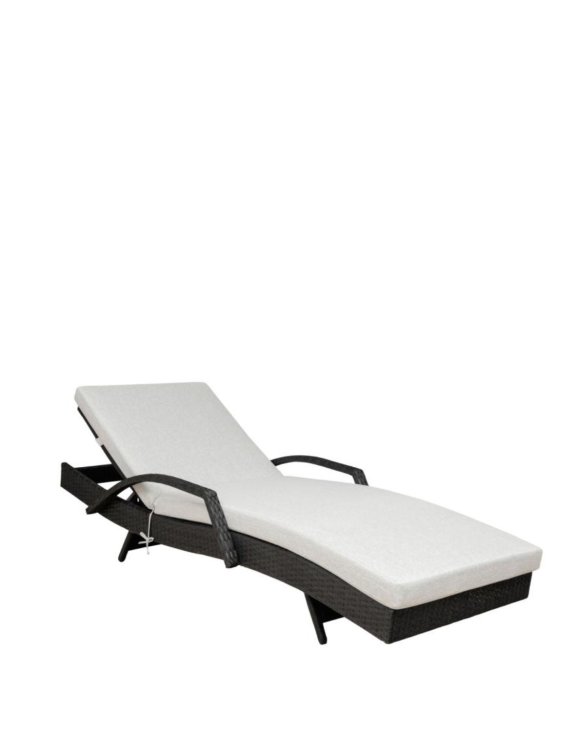 Konstrukce lehátka je vyrobena z odolného černého PE ratanu, který je odolný vůči povětrnostním podmínkám, což z něj činí ideální volbu pro zahradu, terasu nebo k bazénu.