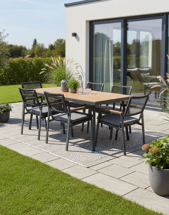 Sestava Santos kombinuje moderní design, odolnost a pohodlí, díky čemuž je ideální volbou pro zahrady i terasy – vytvoří ideální místo k odpočinku i posezení s přáteli.