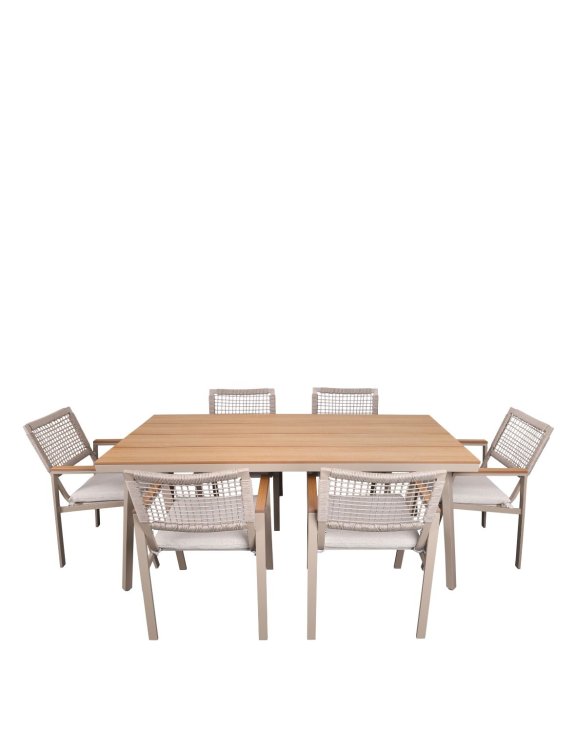 6místná zahradní sestava Santos značky Avida Design v barvě taupe je stylovým a praktickým řešením pro každé venkovní posezení.
