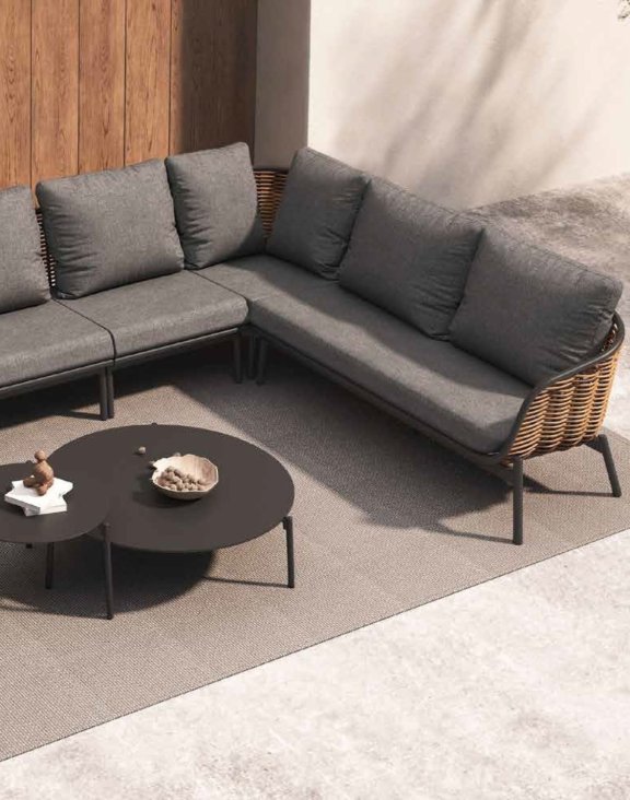 Rohová sedačka byla navržena ve formě modulární rohové sedačky skládající se ze tří pohodlných zahradních pohovek.