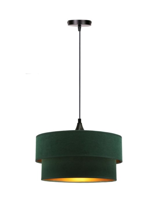 Stínidlo se skládá ze dvou válců v lahvově zelené barvě, které harmonicky ladí se zlatým povrchem uvnitř lampy. Zbytek komponentů má černou barvu.
