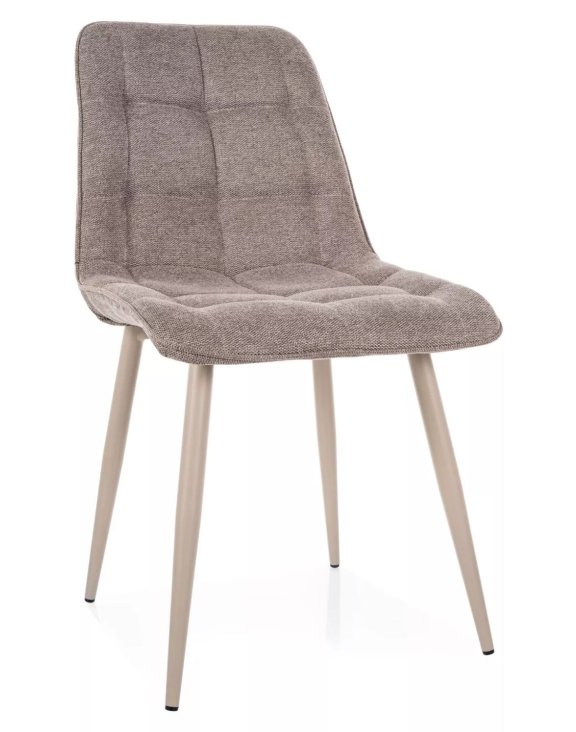 Židle Chic Brego Kašmír je elegantní a moderní kus nábytku čalouněný látkou Brego v béžovém odstínu, umístěný na pevném kovovém rámu v barvě kašmír.
