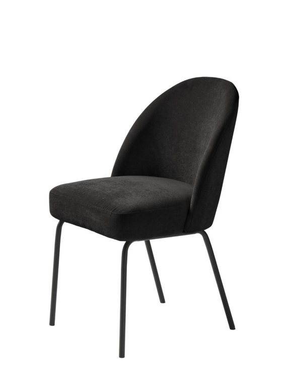 Černá barva látky dodává interiéru hloubku a černé, práškově lakované ocelové nohy židli propůjčují moderní vzhled.