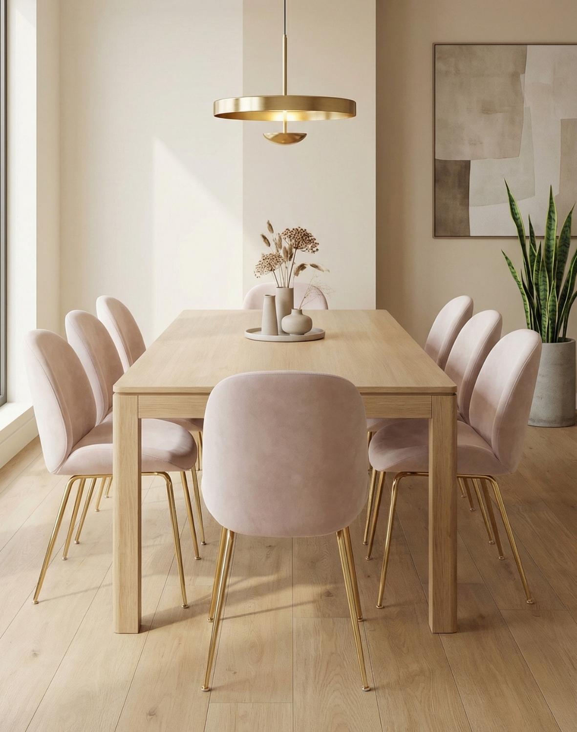 Židle Dori Gold béžová značky Avida Design je moderní a elegantní kus nábytku se zaobleným opěradlem a sedákem.