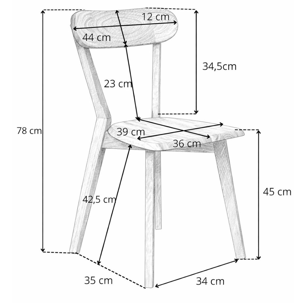 Židle je vyrobena z kaučukového dřeva, známého svou vysokou hustotou, odolností proti deformacím a konstrukční stabilitou.