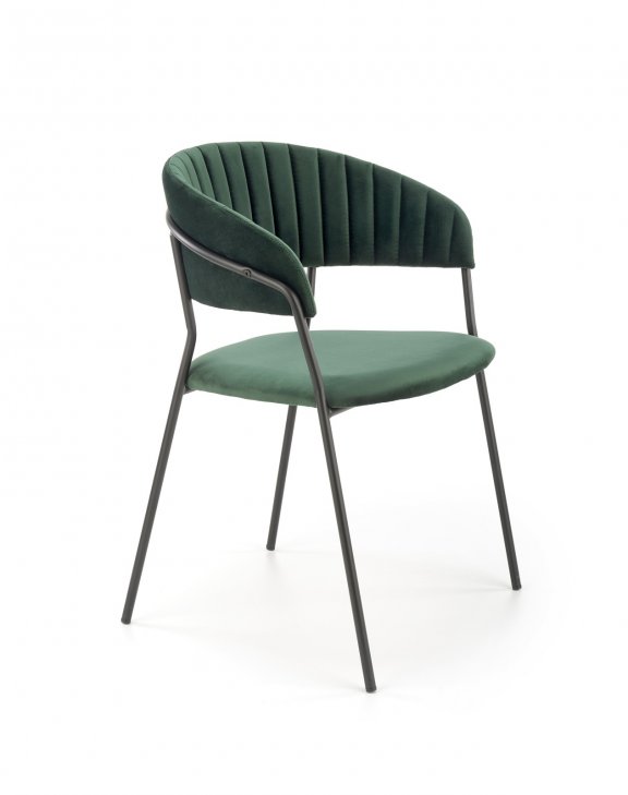Židle je čalouněná příjemnou sametovou látkou, která je k dispozici ve 3 barvách: tmavě zelená, černá a šedá.