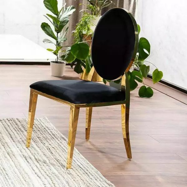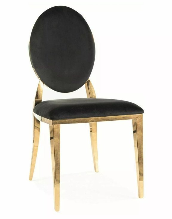 Pevná konstrukce na zlatých, lesklých nohách zajišťuje stabilitu a odolnost, zároveň však propůjčuje židli exkluzivní vzhled.