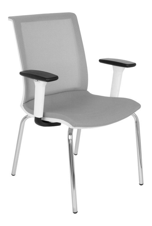 Verze na 4 kovových nohách (4L), opěradlo a rám sedadla v bílé barvě WHITE (W), opěradlo čalouněné prodyšnou sítí (S).