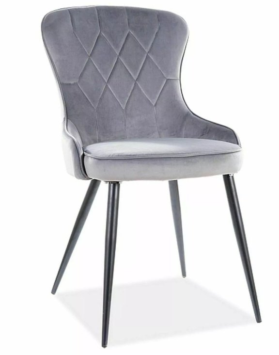 Čalouněná měkkým sametem Bluvel v šedé barvě vyniká stylovým prošíváním do kosočtverců a jemně tvarovaným opěradlem.
