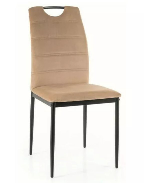 Elegantní barevné provedení – béžový samet v kombinaci s černým kovem se skvěle hodí jak do moderních, tak do klasických interiérů.